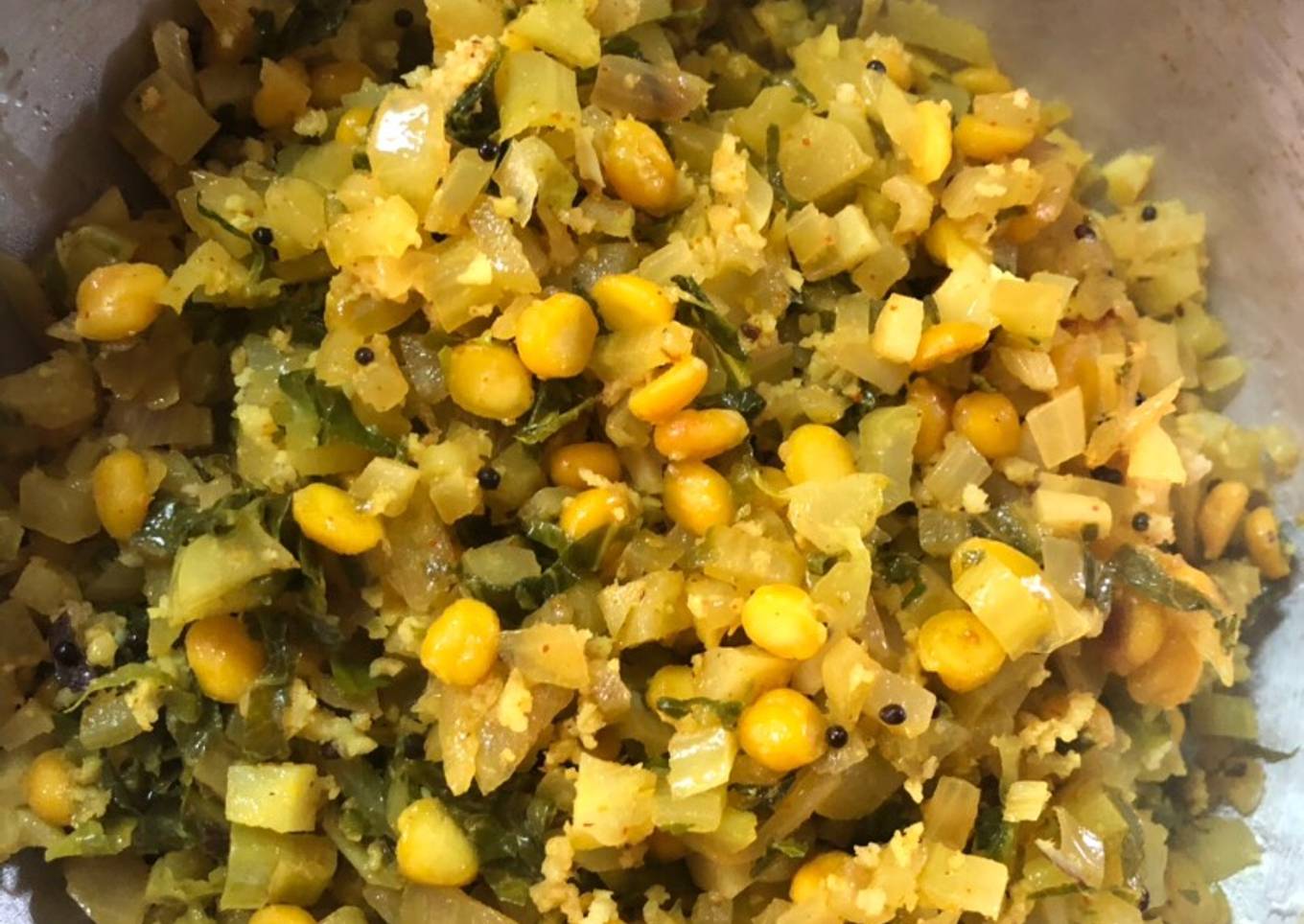 #myfirstrecipe This is a simple, tasty and highly nutritious recipe using cauliflower greens. These leaves are usually discarded and not eaten by most people, and I wonder why? Cauliflower greens are one of the richest source of calcium among greens. Combining these leaves with Chana dal adds protein and makes it very healthy. This is our own homemade recipe creation! Being a clinical nutritionist, I love formulating healthy recipes with the help of my mother, Mrs. Shubha Pinge; who is an expert cook. So kudos to mom and hope you try making it and like this simple recipe.