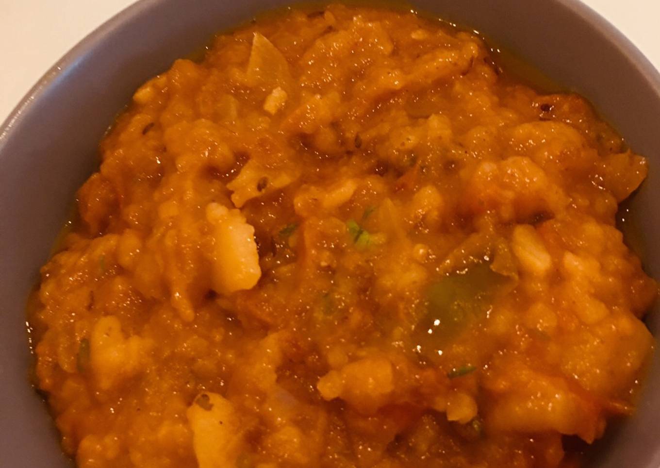 - Once onions are done, add the slurry and cook covered until oil separates